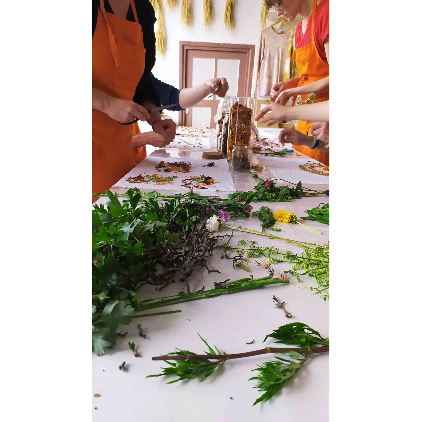 Après vous avoir montré des exemples, vous aurez la possibilité de choisir les végétaux que vous souhaitez utiliser sur votre foulard. Vous voyagerez dans l'univers des couleurs naturelles, technique ancestrale mise de côté durant de nombreuses décennies.